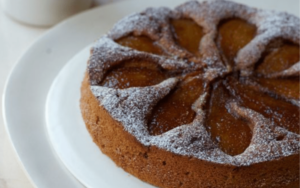 CARAMELISED CARDAMOM PEAR AND BUCKWHEAT CAKE. INGREDIENTS FOR CARAMELISED CARDAMOM PEAR AND BUCKWHEAT CAKE: Caramelised Pears 3 organic pears 2 cardamom pods 25g unsalted butter 2 T maple syrup